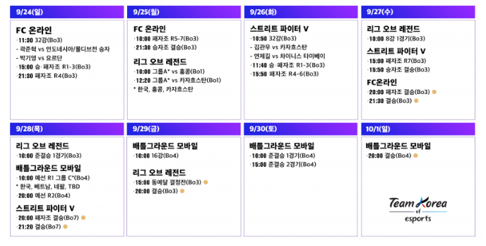 ▶2023 아시안게임 e스포츠 경기일정◀